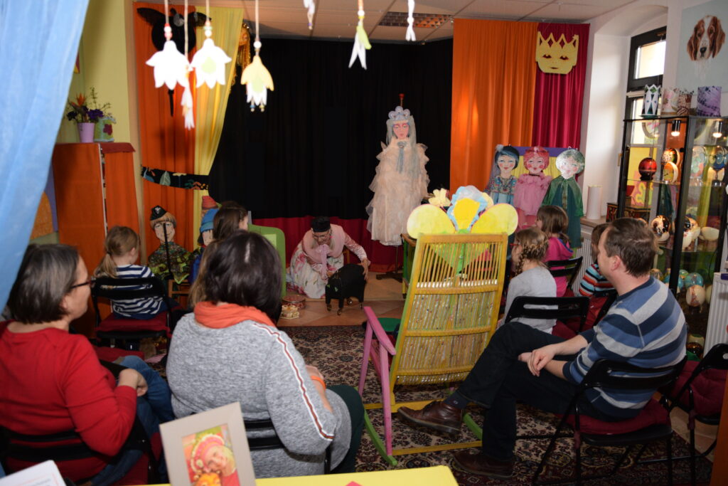 Es gibt für im Erzähltheater ca.18 Sitzplätze. Für die Kindergeburtstagsveranstaltung bereite ich ca. 12 Sitzplätze vor, um die Bewegungsfreiheit an solch einem besonderen Tag zu gewährleisten. Die Anzahl der teilnehmenden Kinder beträgt ca. 10 + 2 Erwachsene = Preisvariante A. Möchten weitere Personen, wie z.B. Großeltern usw. teilnehmen, ist dies möglich und kann gebucht werden. Das bedeutet, ist eine höhere Anzahl als 12 Personen im Publikum gewünscht, gilt die Preisvariante B.